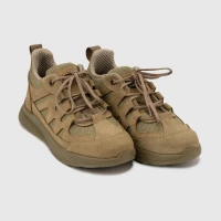 Кросівки виконані із натуральної італійської шкіри (товщина до 2 мм, водотривкiсть не менше 180 хв, мiцнiсть шкiри на роздир не менше 120 Н, ДСТУ ISO 20345) та міцного поліамідного водовідштовхувального матеріалу «Cordura 6.6» з високою зносостійкістю, що робить кросівки одночасно дихаючими та міцними.