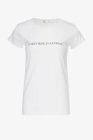 Модная женская футболка, приятная на ощупь, имеет свойство хорошо пропускать воздух, что позволяет коже дышать. С этой вещью можно составить множество интересных и стильных образов.