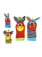 Детские носки и погремушки на запястье Sozzy изготовлены из натуральных материалов. Внутри погремушки, издают шум во время встряхивания. Носки-игрушка стимулировать ребенка самостоятельно играть, тянуться и хвататься, улучшает координацию рук и глаз ребенка, а также его моторные навыки. Яркие цвета помогают стимулировать зрение малыша. Отличная игрушка для развития внимания и побуждает малыша к открытиям. Замечательный подарок для будущей мамы. Эти игрушки понравятся и малышам и родителям. только звонят и отвлекают малыша, но и яркие и привлекательные.ХАРАКТЕРИСТИКИ:- Материал - текстиль;- специальное волокно, которое не вызывает аллергии;РЕКОМЕНДОВАНО ДЛЯ ДЕТЕЙ С 3 МЕСЯЦЕВ!